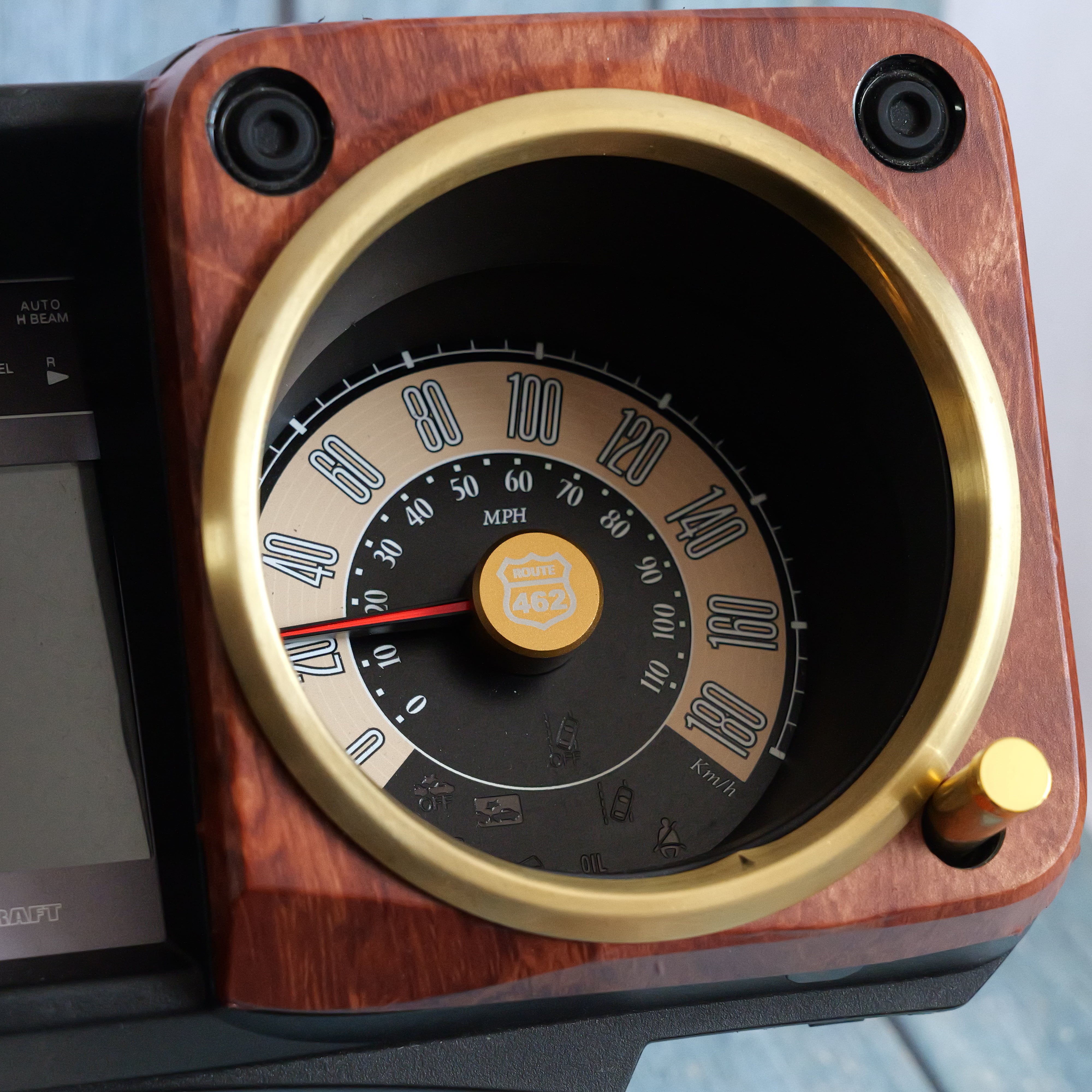 メーターの中央に装着するだけで、視界に入るたびに“遊び心”と“クラシック感”を演出してくれます。